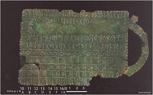 Ob utrjevanju in prepoznanju etruščanske abecede z razumevanjem besednih ter stavčnih pomenov, ko so napisi osrednje Italije spregovorili v obliki rovtarskega dialekta je bilo naravno in pričakovano opraviti tudi preizkus ‘venetskih’ znakov z matematičnim ključem. Najprej se je ponudila primerjava številk 1,2,3 in 9 z znanimi arabskimi številkami. V nadaljevanju skupne primerjave pa sem na atestinskih tablicah naletel na ponavljajoče razpredelnice s šestnajstimi razdelki. Znaki so se tudi na preostalih sedmih prostorih ponavljali. Tako je nastala ocena, da vsebino venetskih znakov predstavlja šestnajstiški številski sistem.